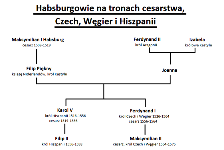 Zadanie to wymaga od uczniów uważnej analizy obu materiałów i powiązania ze sobą informacji w nich zawartych. Poprawne rozwiązane jest wynikiem ustalenia na podstawie tekstu, która spośród osób wymienionych w materiale genealogicznym mogła być mężem Anny Jagiellonki. Na temat małżonka Anny Jagiellonki w tekście znajdują się dwie informacje. Po pierwsze wiadomo, że narzeczonym Anny miał być Maksymiliana I lub jeden z jego wnuków (należy odnaleźć Karola V i Ferdynanda I). Po drugie - mąż Anny musiał, podobnie jak ona, być władcą Czech i Węgier. Spośród osób przedstawionych w tym materiale genealogicznym warunek ten spełniają jedynie Ferdynand I i Maksymilian II. Jedynym kandydatem spełniającym oba warunki jest więc Ferdynand I (odpowiedź D).